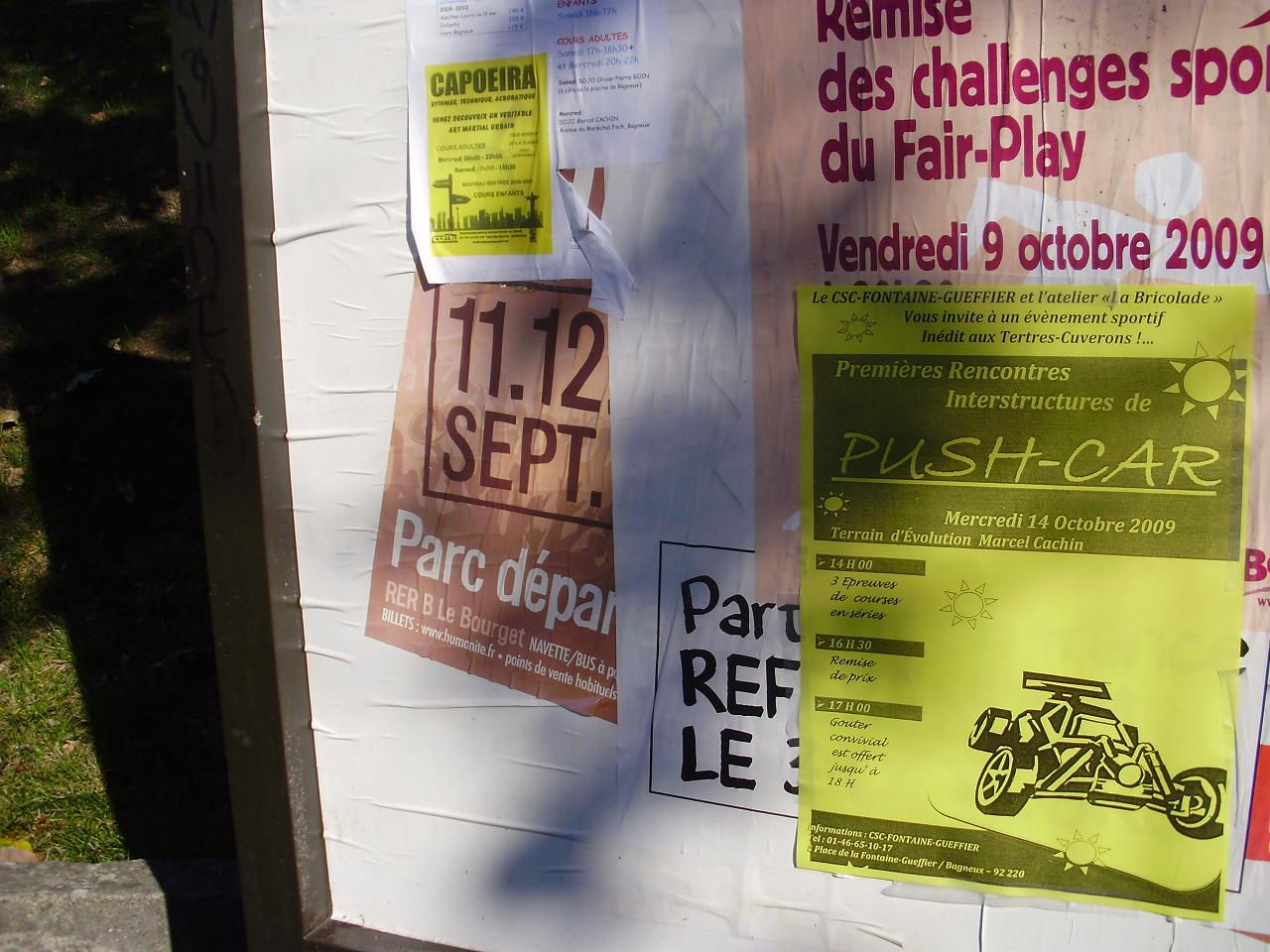 Cette course est la première édition des rencontres interstructures de Push Cars à Bagneux, elle a lieu sur le terrain de l’espace scolaire Marcel Cachin de Bagneux, le mercredi 14 octobre 2009 de 14 heures à 17 heures.
