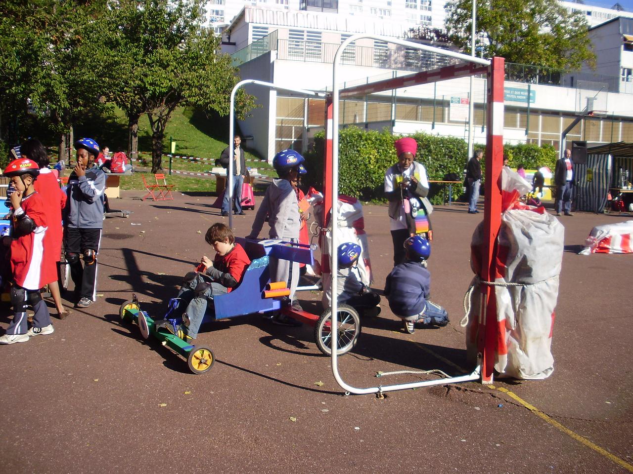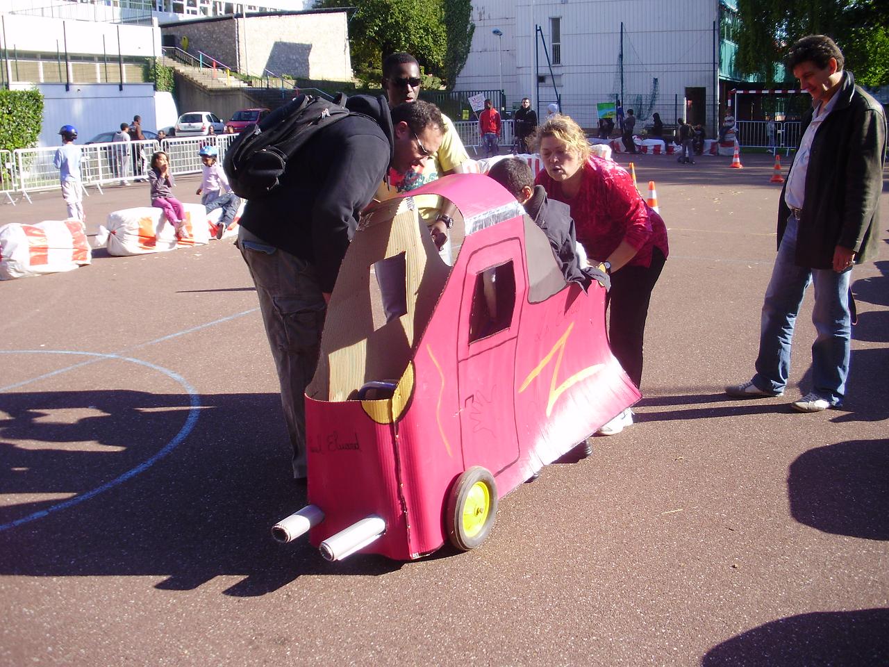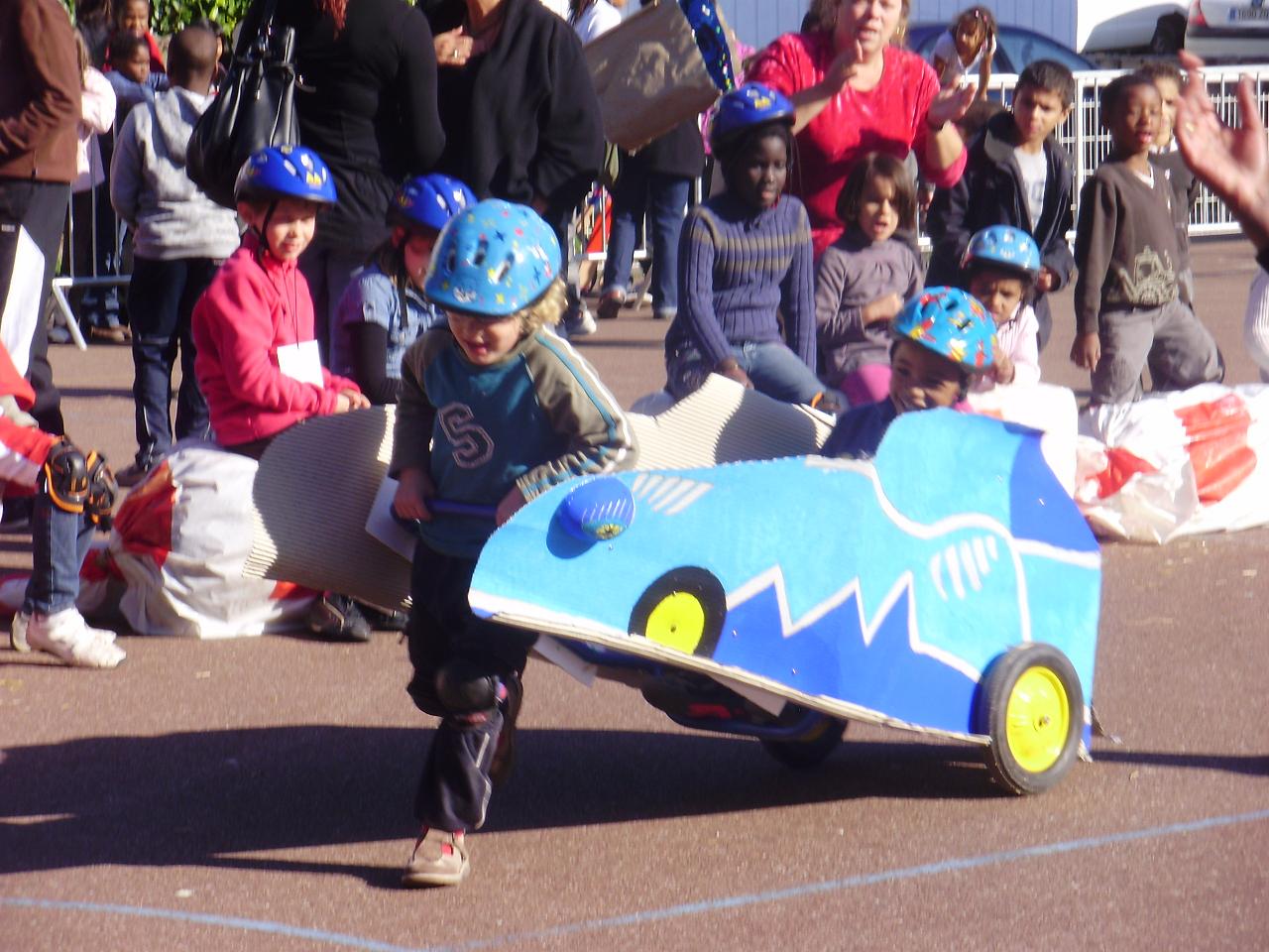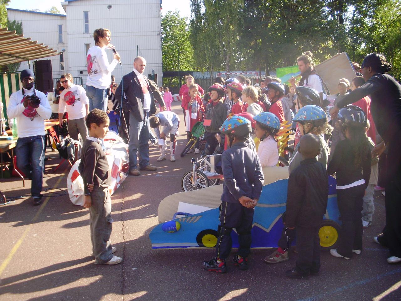 Merci aux enfants du Jardin des savoirs et de l’atelier La bricolade, aux enfants des centres culturels de Bagneux réunis à la Fontaine Gueffier par Frédérique Monneau et Valérie Pellerin, tous ont contribué à la réalisation des voitures, de la course et du reportage. Le jour de la course il y avait une très bonne ambiance, et de jolies voitures toutes très originalement décorées, une organisation sans faille sous un soleil magnifique et beaucoup de champions!!!!