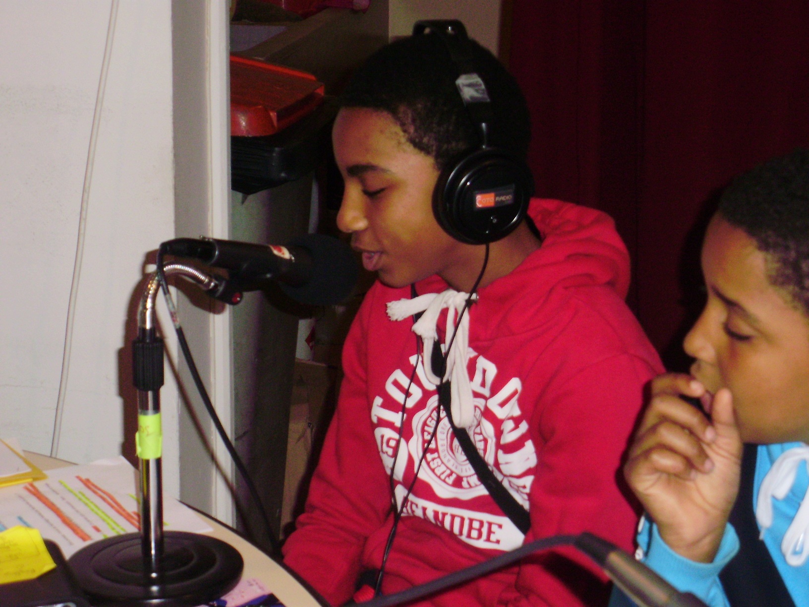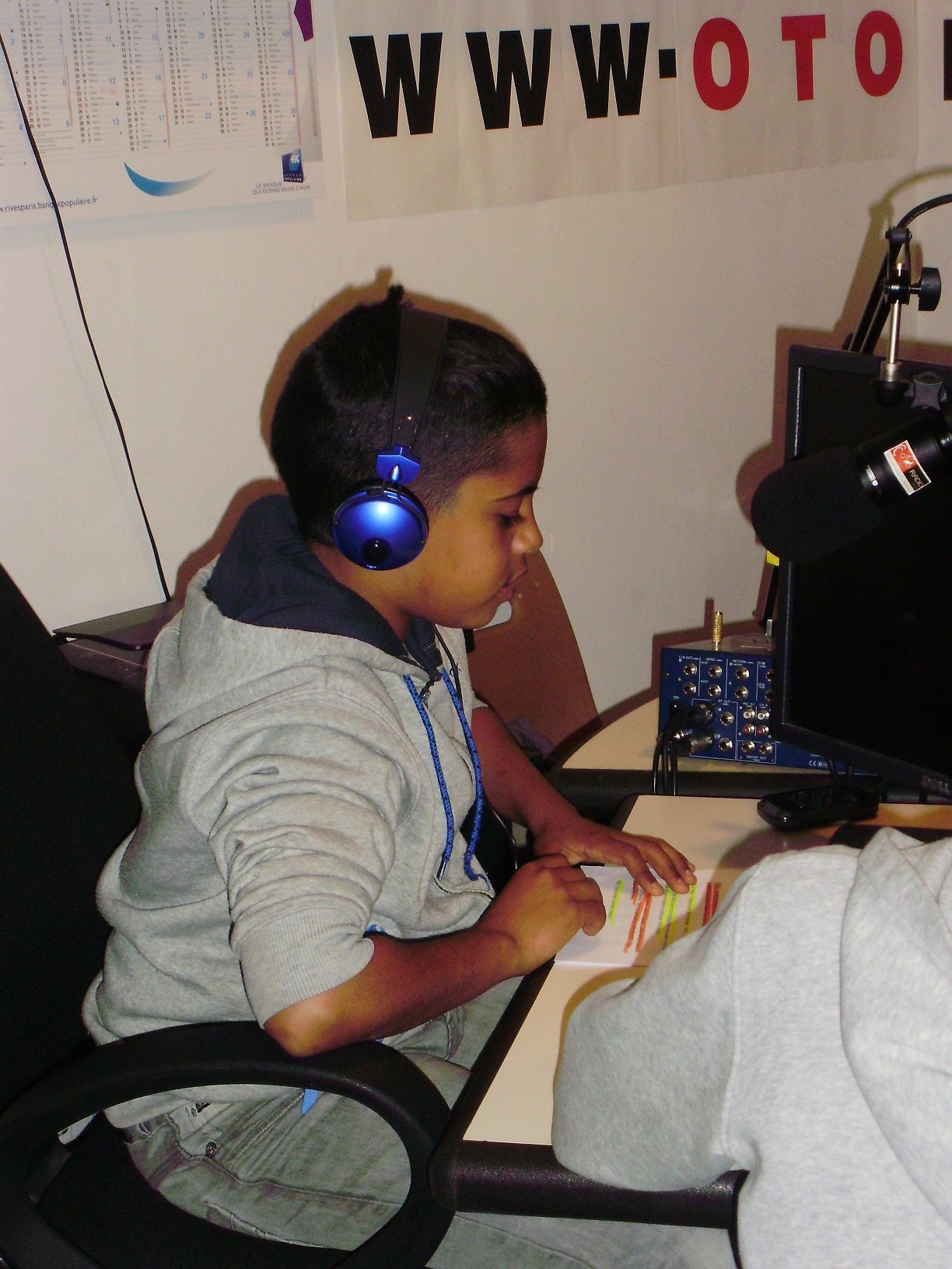 Bilel, Diarra, Grégory, Max, Tarik et Walid, les jeunes reporters en herbe, se réunissent durant une semaine au Point Jeune de Gentilly pour préparer deux reportages et présenter une émission de radio sur la relation entre les jeunes et les séniors et sur le thème « avoir dix ans ». Ce projet, imaginé et conduit par Emmanuelle Soler, responsable jeunes publics du service culturel de Gentilly, s’inscrit dans les événements du festival COURANTS D’ARTS où l’émission sera diffusée, en avant première, le vendredi 1er juin à 17h 30 à la Médiathèque de Gentilly et en libre écoute au service culturel. Ce programme a été élaboré avec la participation des personnes âgées de Gentilly, du CCAS, du foyer de la Bièvre, Rosa Palmiéri et le service culturel, toute l’équipe du Point Jeune, et les responsables de la communication d’Anis Gras à Arcueil.