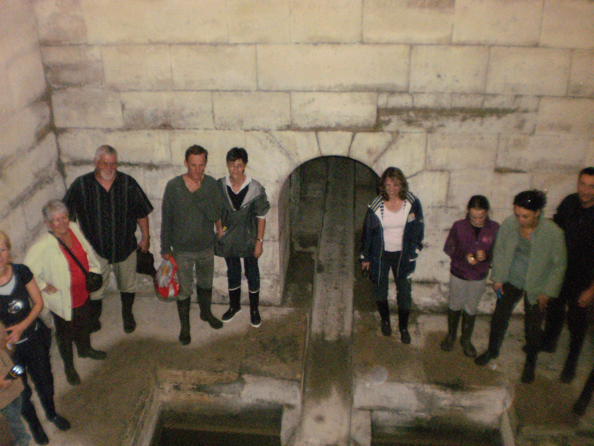 A la file indienne, c’est parti pour environ trente minutes de découvertes sous-terraines dans un couloir en voûte d’environ 60 cm de côté et de 1, 80 mètre de hauteur, toujours avec les commentaires avisés de notre guide.