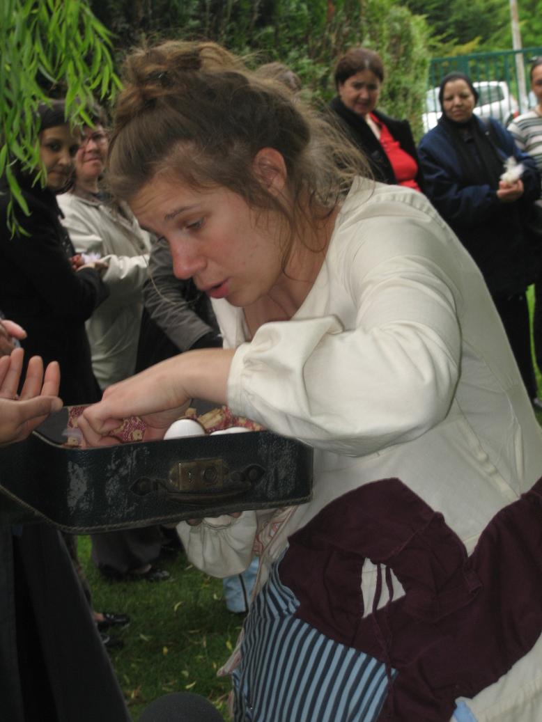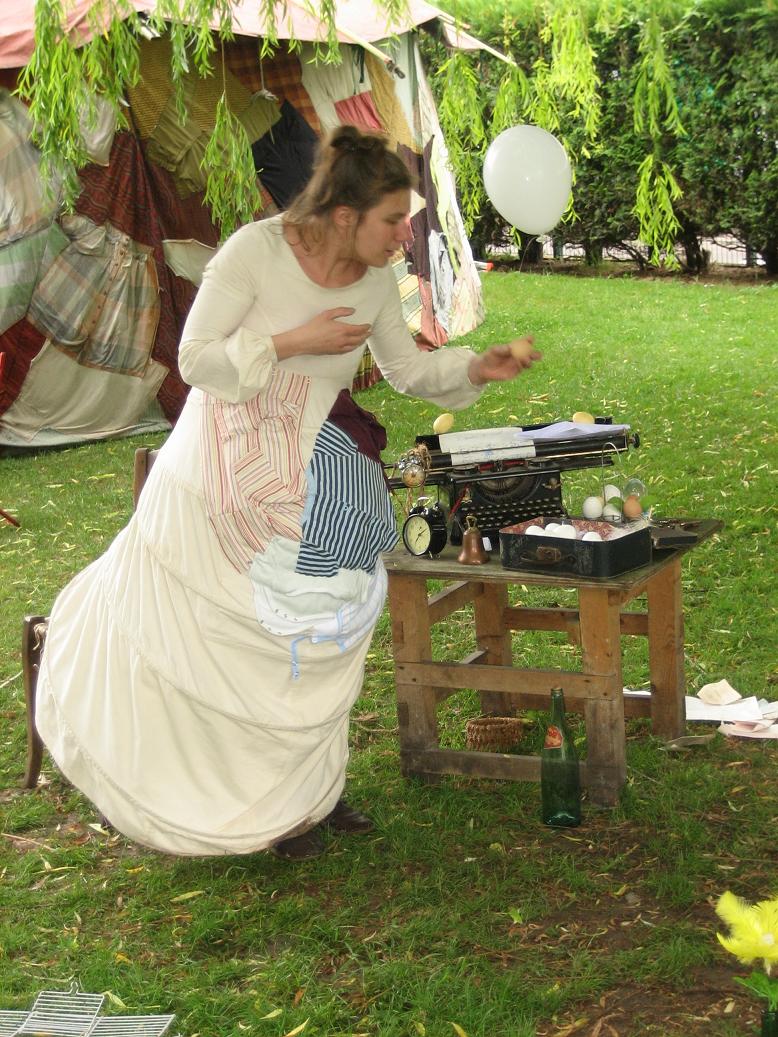 Ce monde, c’est celui de Madame Poussin (Johann) qui scande comme un refrain : « Les poules se sont échappées du poulailler ». Au loin, le bruit sourd d’une sirène de bateau, signal du départ. Pour les passagers médusés à qui est confié un œuf, dont il faudra prendre soin, il est temps d’embarquer dans la yourte.