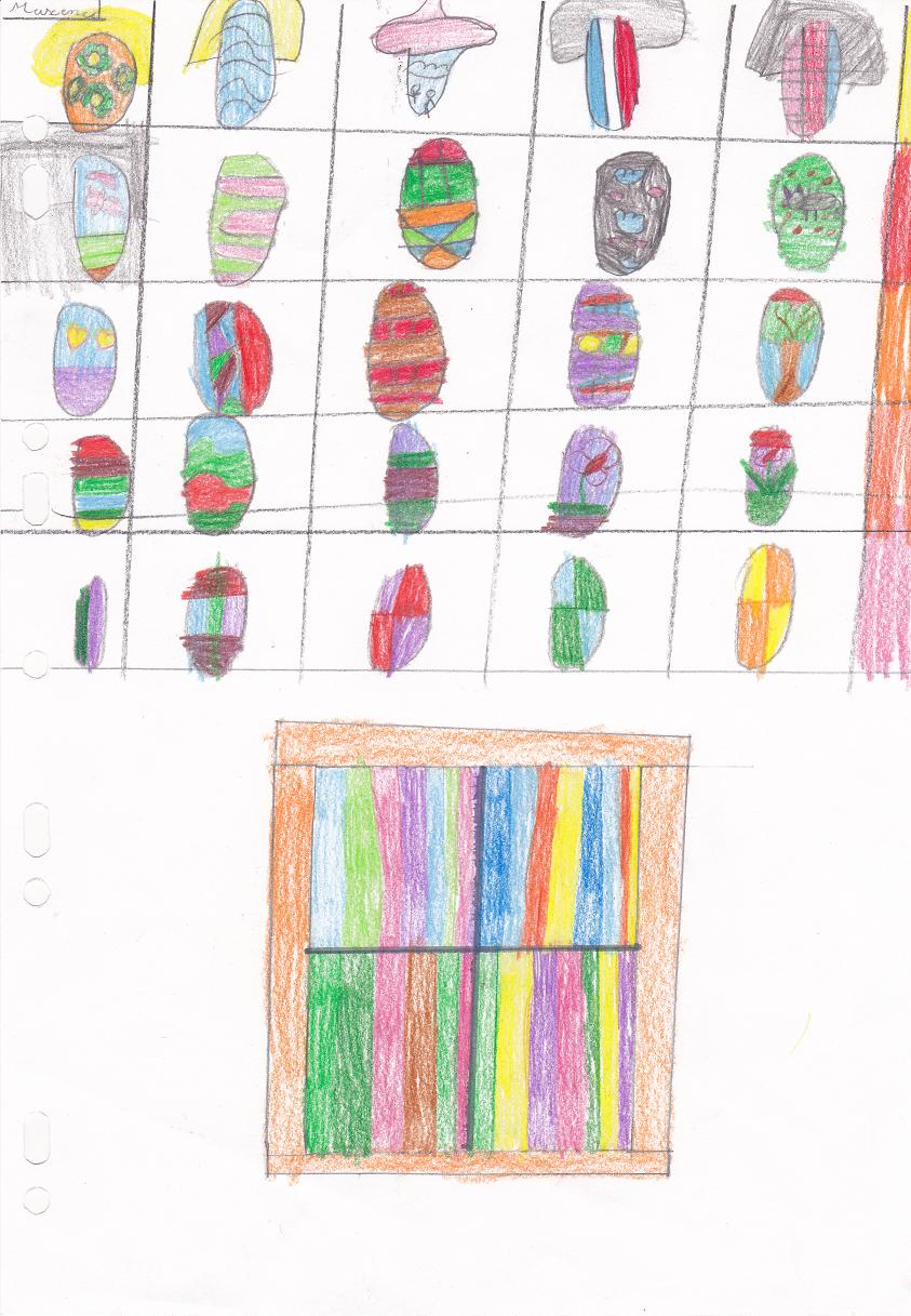 Quand nous sommes rentrés dans la Maison des arts avec la maîtresse Aurore pour voir l’exposition, cela nous a fait bizarre car nous avons découvert plein de choses différentes. Nous sommes restés assez longtemps à observer un portrait. Plus on regardait, et plus on voyait de détails. De près, on voyait bien les petits morceaux de papiers collés. Nous avons cherché longtemps la photo cachée de l’artiste dans le portrait mais nous ne l’avons pas trouvée. Cela nous a donné envie de faire pareil en classe, de faire des portraits avec des petits bouts de papier.